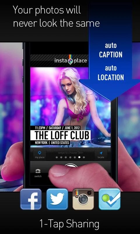 - Maybe you want to share the photo of place which you are in love? InstaPlace have special skin for it!